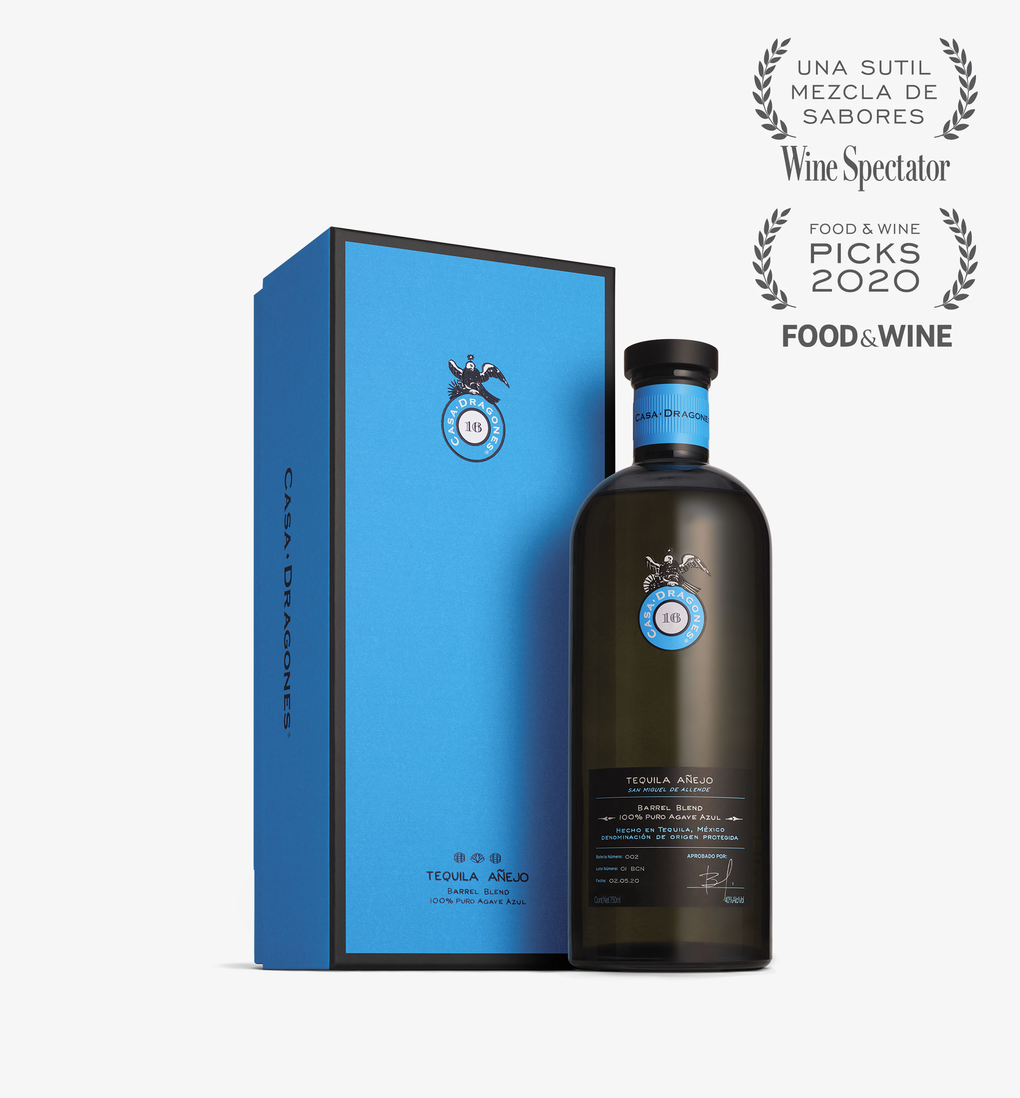Tequila 100% puro de Agave Azul, que logra su carácter distintivo al ser añejado en dos barricas diferentes, roble francés y roble americano nuevas, seleccionadas por sus sabores y características singulares. Al concluir el proceso de añejamiento, hacemos un maridaje artesanal inspirado en ambas barricas, celebrando las notas predominantes de agave, elegantes y suaves, que revelan un perfil infinitamente rico y matizado.